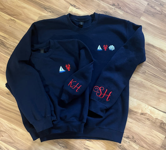 Custom Order for Stephanie Hat, Cup, 2 Crewneck Sweatshirts Embroidered